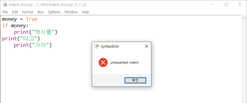 들여쓰기 오류가 발생하는 것을 확인할 수 있다.