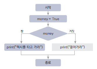 # 앞에서 살펴본 택시 예제에서 조건문은 money가 된다.