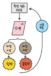 # 이런 점수를 차례로 검사해서 합격했는지, 불합격했는지 통보해 주는 프로그램을 만들어 보자.