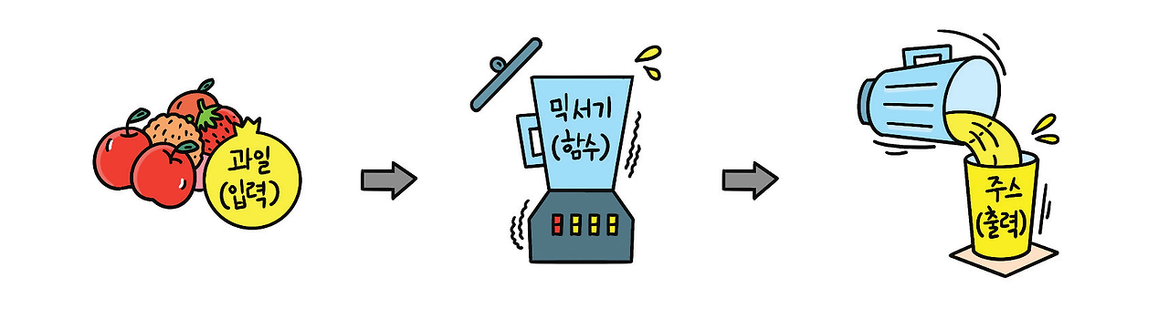 믹서는 과일을 입력받아 주스를 출력하는 함수와 같다.