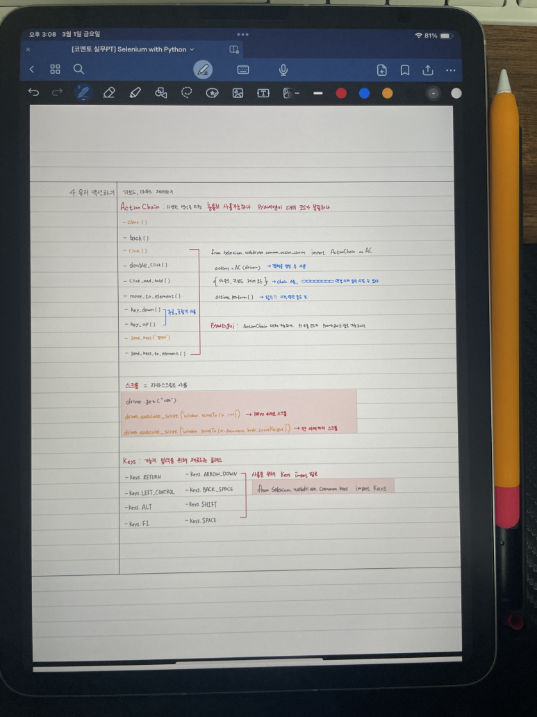 # Action Chain 키보드, 마우스 제어를 위함